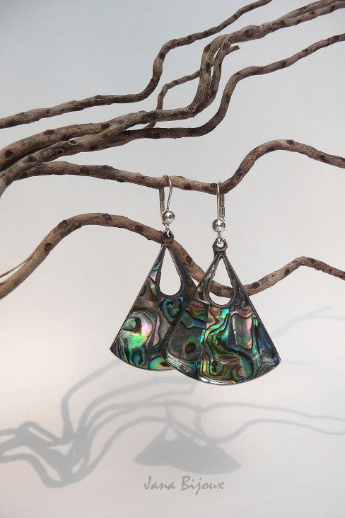 Ag61 17/10/2010VENDIDOS ( Prodáno)Jana Bijoux Brincos de alpaca (comprimento 6 cm), com abalone e fecho de prata 925/1000 R$ 36,00 ALPAKA, ABALONE A STŘÍBRO.