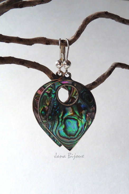 Ag62 17/10/2010VENDIDOS ( Prodáno)Jana Bijoux Brincos de alpaca (comprimento 6 cm), com abalone e fecho de prata 925/1000 R$ 36,00 ALPAKA, ABALONE A STŘÍBRO.