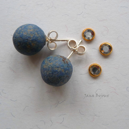 Ag65 08/11/2010VENDIDOS ( Prodáno)Jana Bijoux Brincos de prata com tarraxas, bola de 1 cm de cerâmica com engobe azul R$ 22,00. STŘÍBRNÉ PUZETOVÉ NÁUŠNICE S KERAMIKOU.