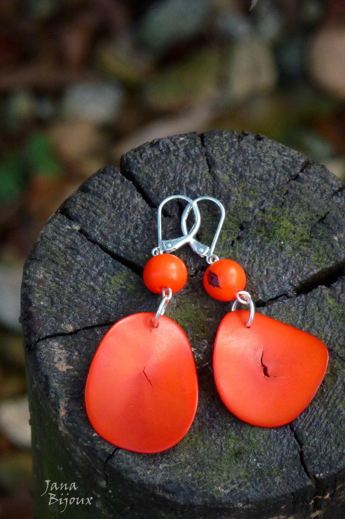 Lehounké náušnice z barveného taguá ořechu a semínek. Mám i jiné barvy.