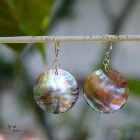 b288 06/04/2012VENDIDOS ( Prodáno)Jana Bijoux Brincos com componentes banhados à prata com margaritifera R$ 18,00. Comprimento 5 cm. MARGARIRIFERA, POST.KOVODÍLY.