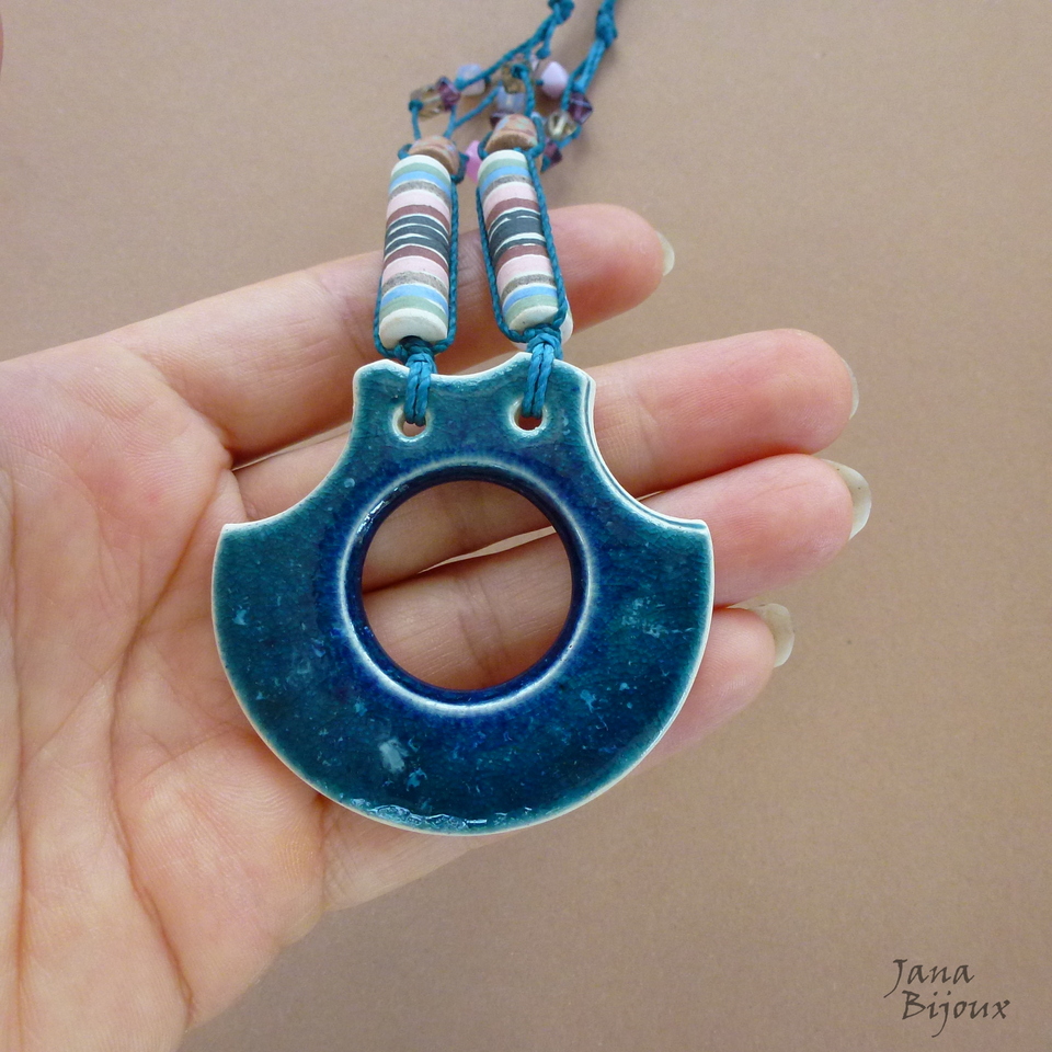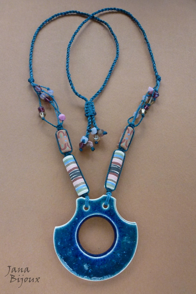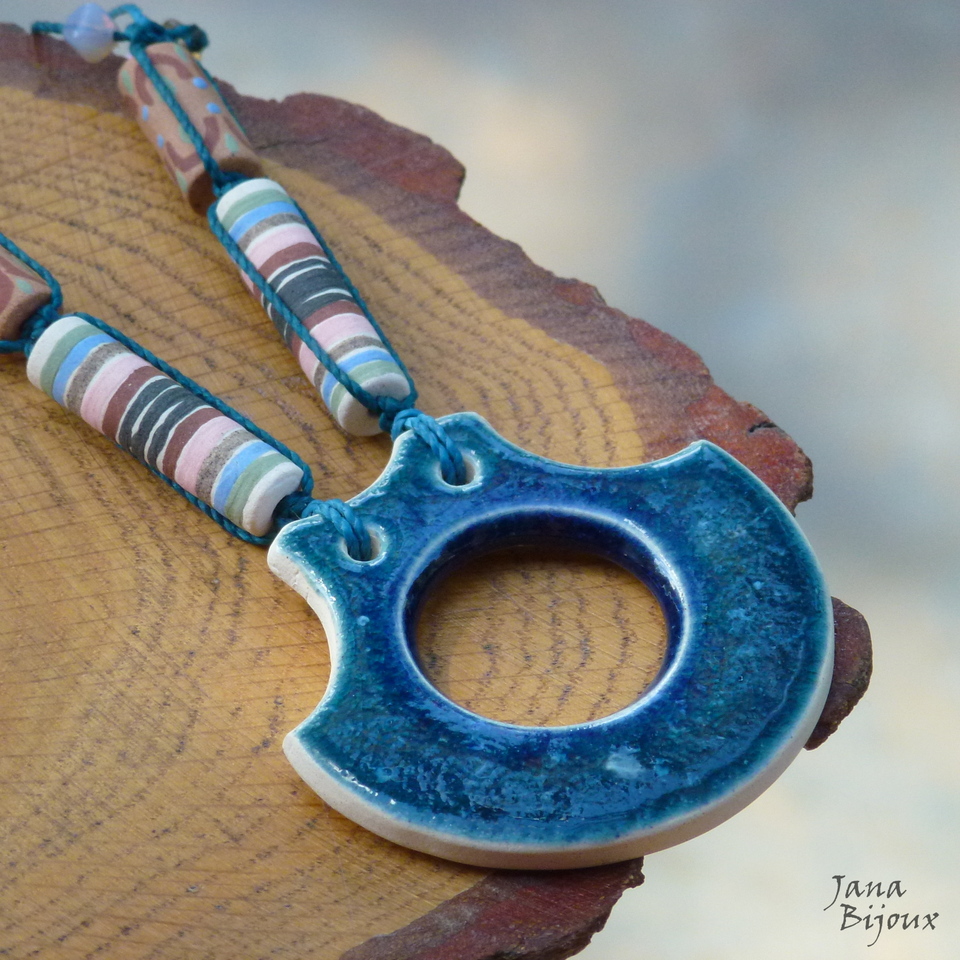 Colar de cerâmica da Janete Dallabona, vidro, sem metal e com comprimento ajustável.