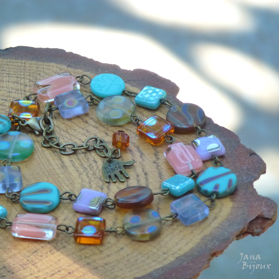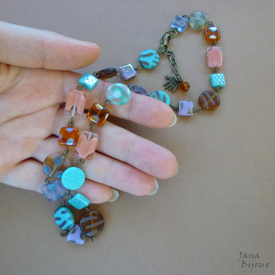 c1084 12/03/2016VENDIDOS ( Prodáno)cristal, importado, vidro imortadoJana Bijoux Colar curto de multicoloridos cristais importados, comprido 47,5 cm + corrente para prolongar 4,5 cm com pingente de mão com escrita HAND MADE R$ 39,90.