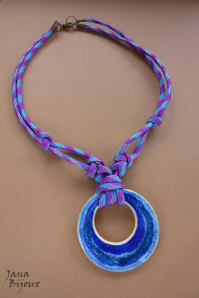 Colar curo 45 cm com cerãmica 5,5 cm, laterais de cordelete de escalar nos tons da cerâmica. Acabamento em ouro velho R$ 36,00  SUPER PEÇA ÚNICA
