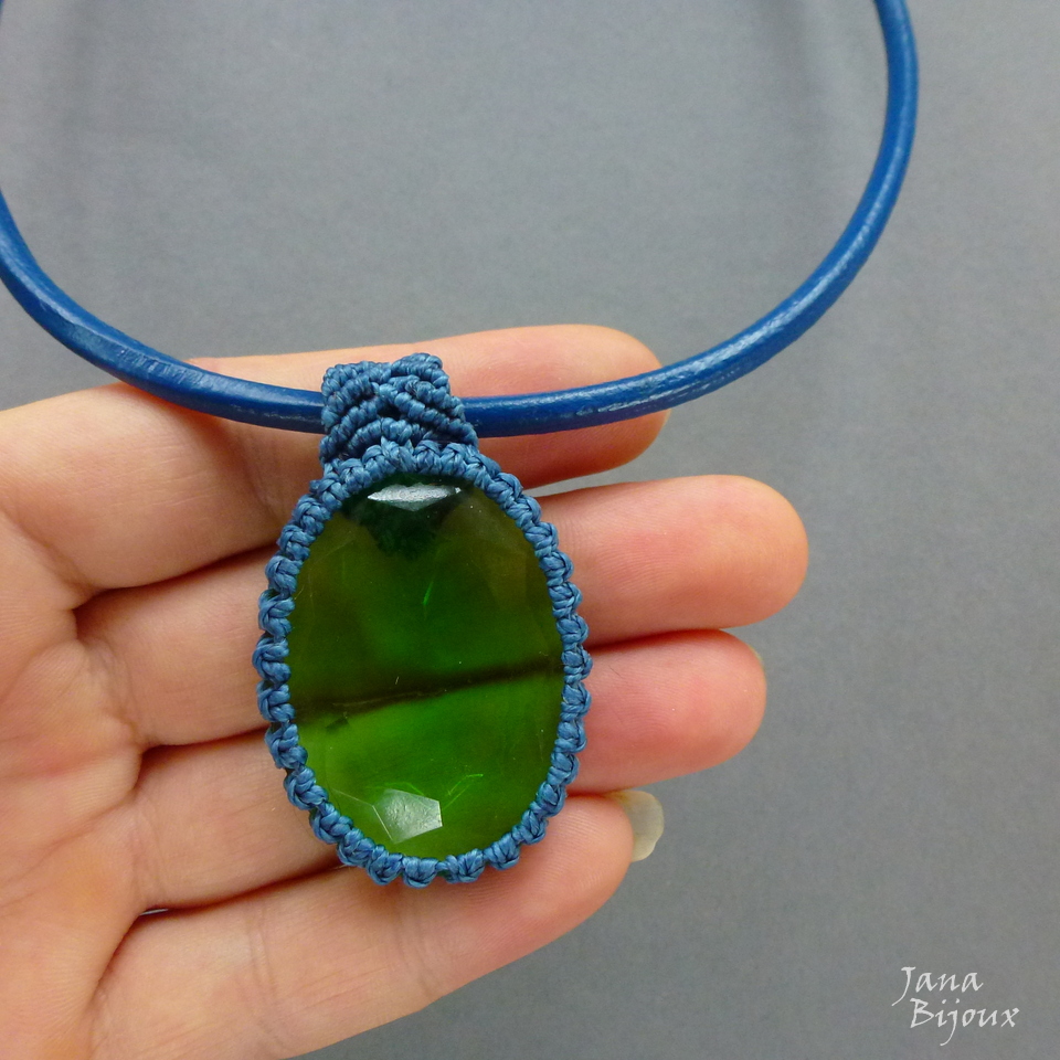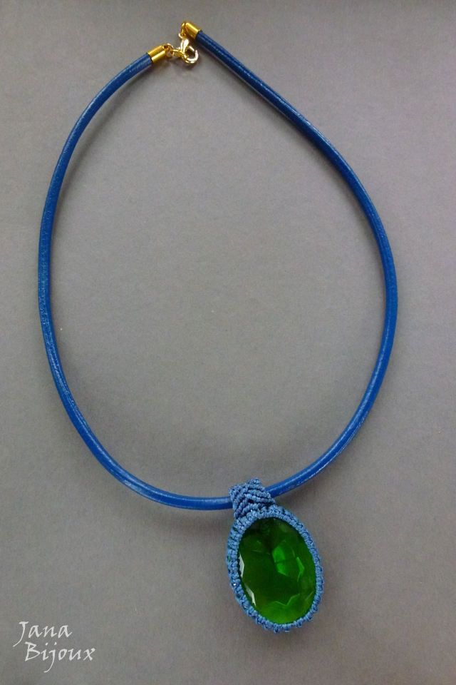 c1162 03/01/2017VENDIDOS ( Prodáno)Jana Bijoux Colar médio 52 cm de couro cor azul escuro, importado 4mm.. vidro lapidado a mão ( 4cm por 3 cm), pingente tem livre movimento no couro, mede com macramé e alça 5,3 cm, acabamento dourado R$ 35,00