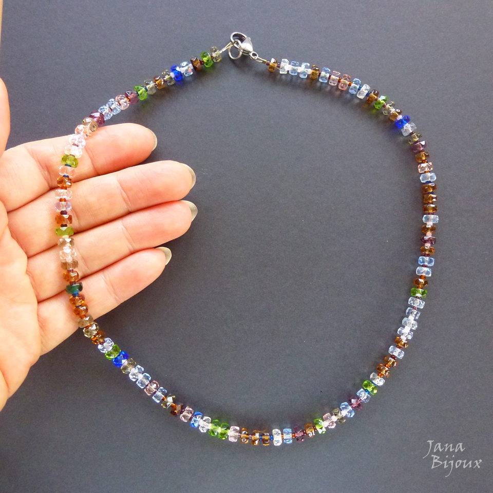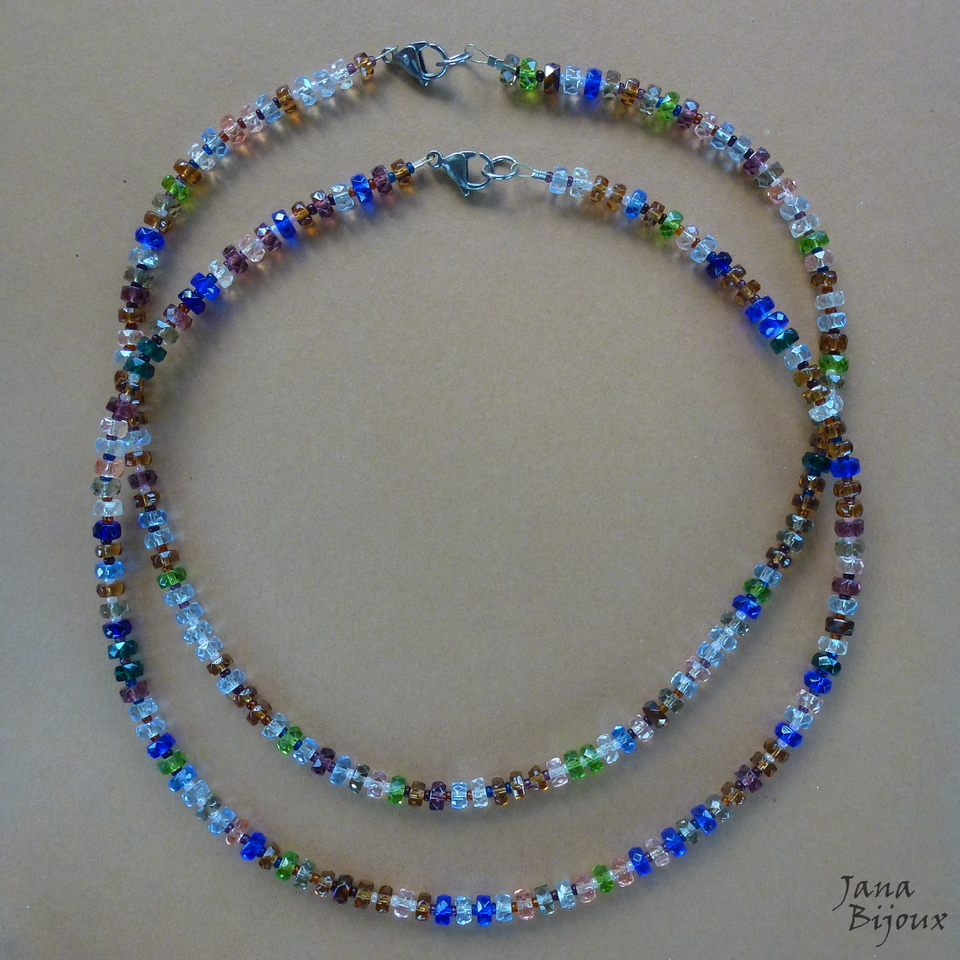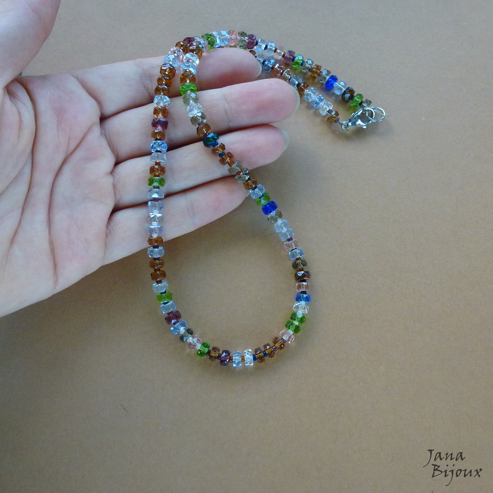 Colar curto 48 cm de vidro colorido, importado da República Tcheca e mini miçangas no meio de cada peça de vidro + com acabamento em aço inox. R$ 37,00 PEÇA ÚNICA