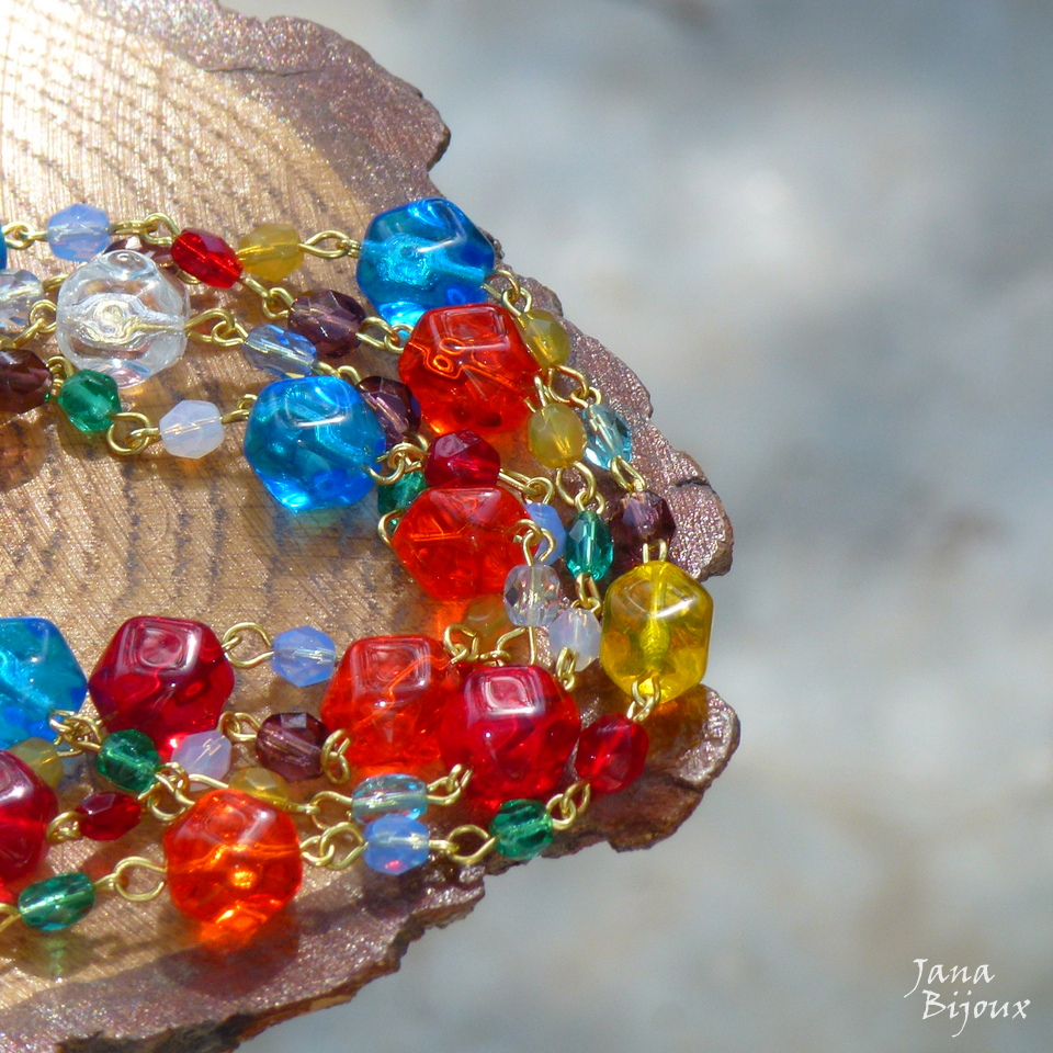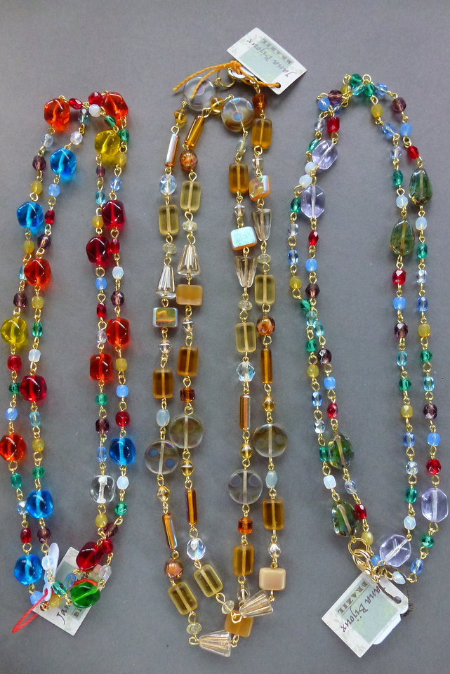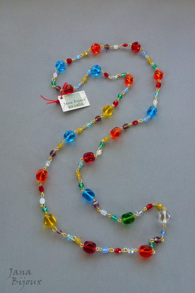 Colar comprido 92 cm, de vidro importado, colorido, colar sem fecho. R$ 49,90