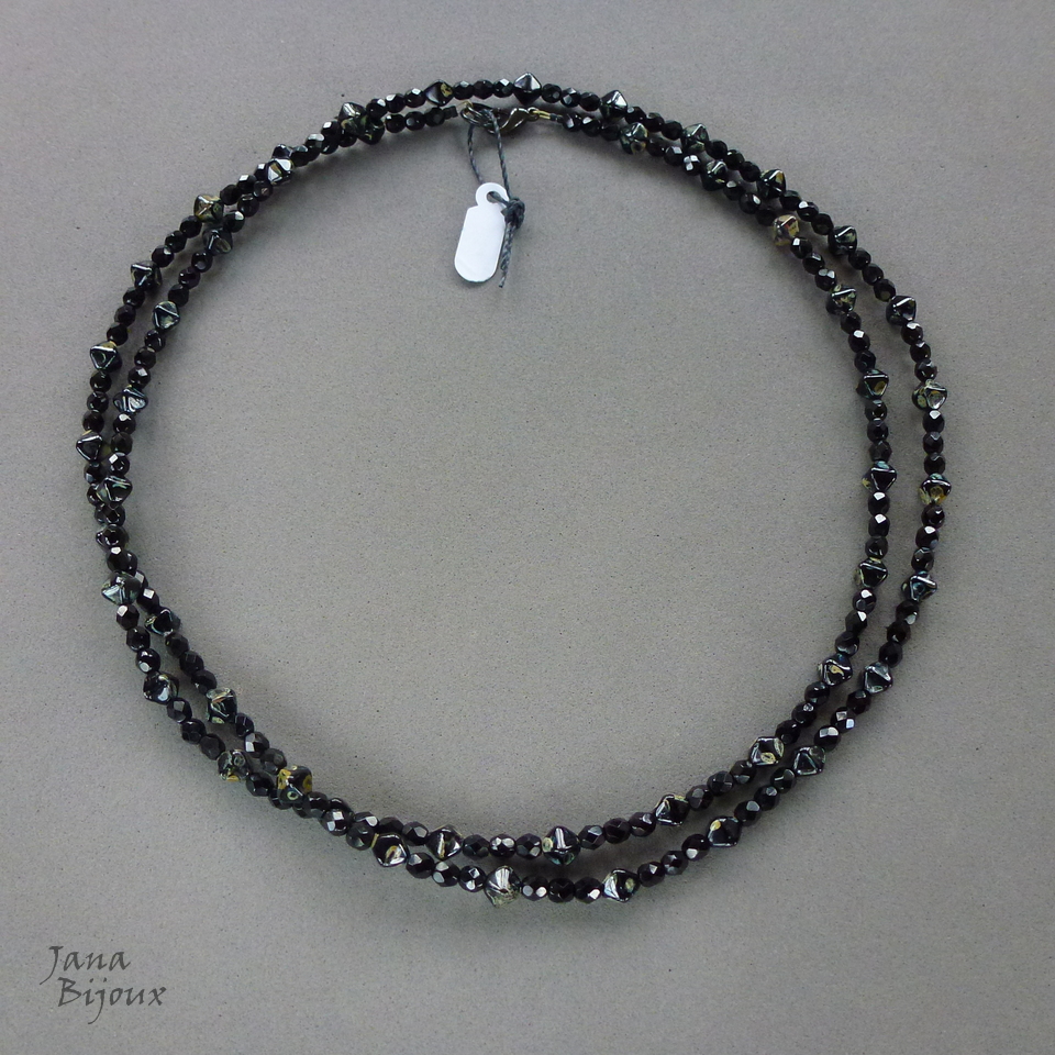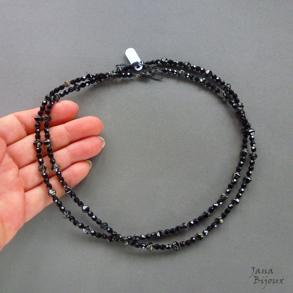 Colar comprido 93,5 cm de cristal preto e vidro , acabamento preto R$ 35,00