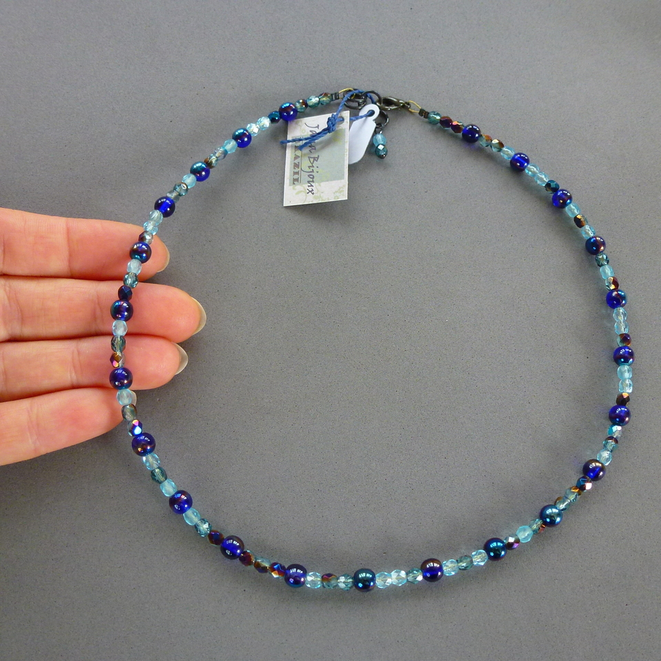 c1292 28/08/2018VENDIDOS ( Prodáno)Jana Bijoux Colar curto 45 cm de cristal azul, metálico, importado R$ 24,00