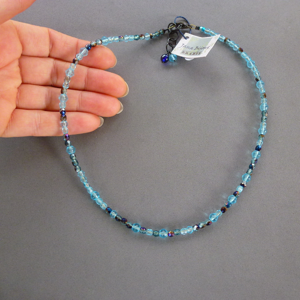 Colar curto 45 cm de cristal azul, importado R$ 18,00