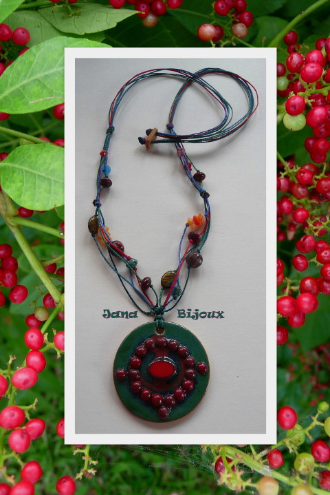 c410 08/05/2010VENDIDOS ( Prodáno)Jana Bijoux Colar comprido sem metal algum, com a colagem de vidro na cerâmica. DLOUHÝ NÁHRDELNÍK BEZ JAKÉHOKOLIV KOVU S KERAMICKÝM MEDAILÓNEM S KOLÁŽÍ SKLA.