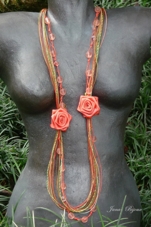 c542 02/04/2011VENDIDOS ( Prodáno)Jana Bijoux Colar comprido sem metal algum, com flores de fitas, vidro e muito fio encerado R$ 38,00.
