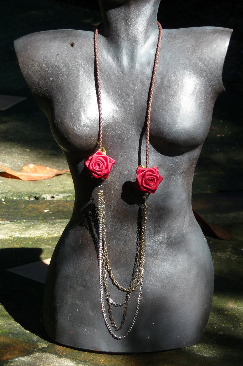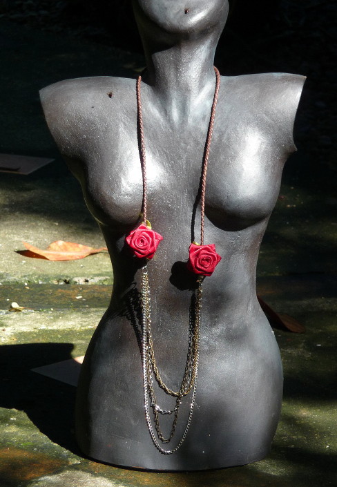 c545 03/04/2011VENDIDOS ( Prodáno)Jana Bijoux Colar comprido com duas rosas, couro e corrente na frente R$ 34,00.