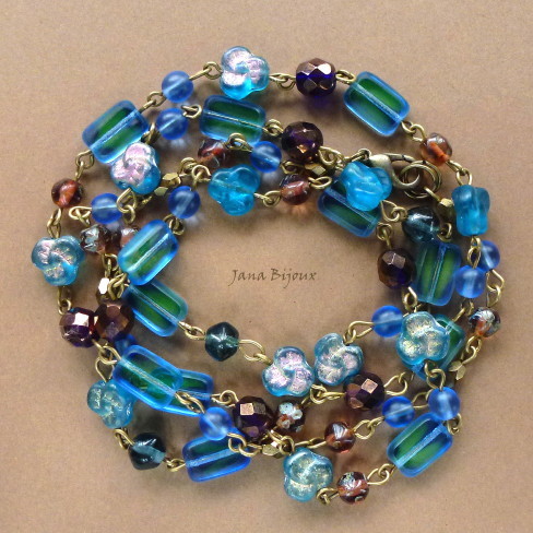 c584 28/07/2011VENDIDOS ( Prodáno)Jana Bijoux Colar comprido de vidro com tons azuis, rosa antigo e componentes em ouro envelhecido R$ 38,00. DLOUHÝ NÁHRDELNÍK S MODRÝM SKLEM A STAROZLATÝMI KOVODÍLY.