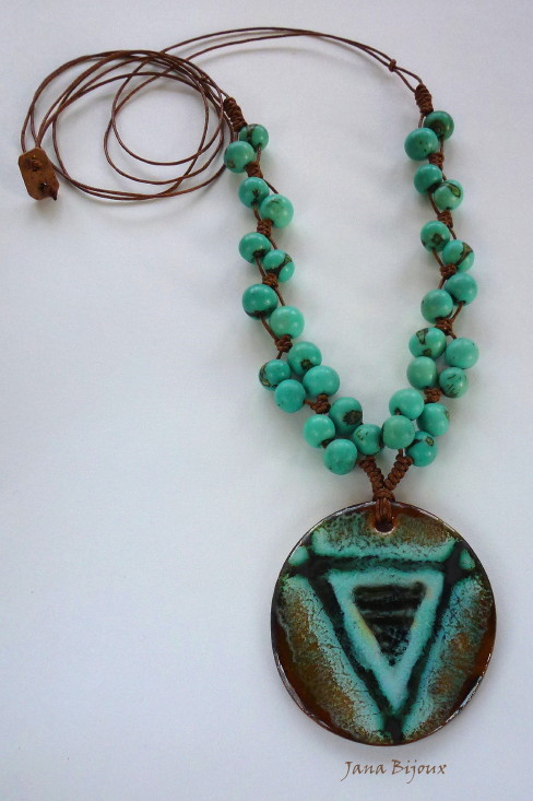 DLOUHÝ NÁHRDELNÍK S KERAMIKOU, MAKRAMÉ A BARVENÝMI SEMÍNKY.