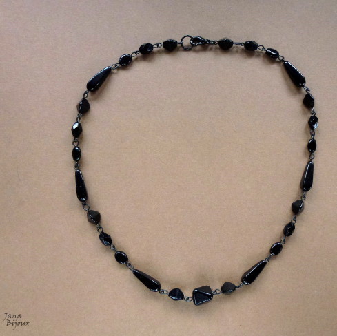 ČERNÝ, KRÁTKÝ NÁHRDELNÍK S  KOVODÍLY S POVRCHOVOU ÚPRAVOU ČERNÉHO ZINKU.
