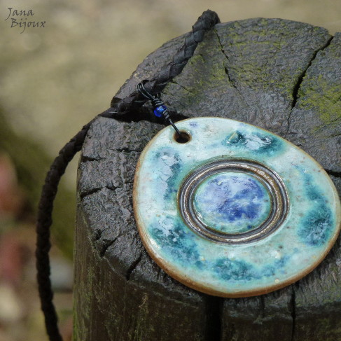 c801 02/12/2012VENDIDOS ( Prodáno)Jana Bijoux Colar curto 45 cm de couro, com acabamento em ouro velho, engate de cerâmica feito a mão de arame importado e medalhão de cerâmica 5 x 5,5 cm R$ 22,00. KERAMIKA A KŮŽE