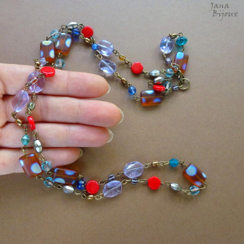 c837 24/02/2013VENDIDOS ( Prodáno)artesanal, bijuterias artesanais, colar colorido, contomporaneo, contraste, jana bijouxJana Bijoux Colar comprido 91 cm com vidros e cristais contrastantes, componentes ouro velho-pode ser usado como curto com duas voltas R$ 38,00.
