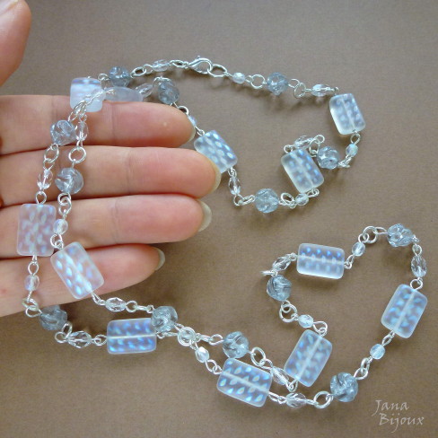 c839 25/02/2013VENDIDOS ( Prodáno)Jana Bijoux Colar comprido de vidro transparente, fosco e cintilante com componentes banhados à prata de R$ 43,00. por R$ 32,00 PEÇA ÚNICA