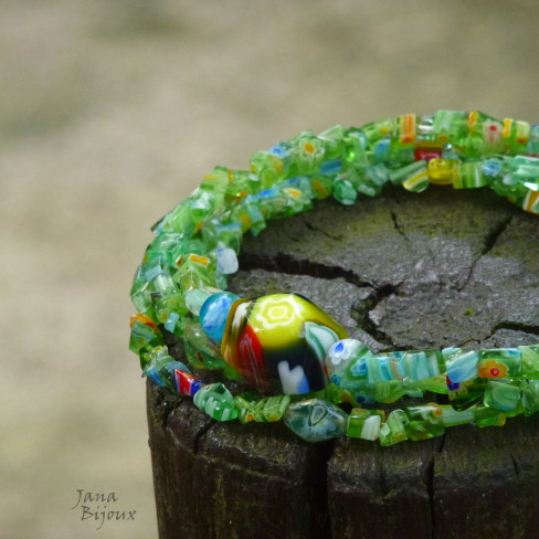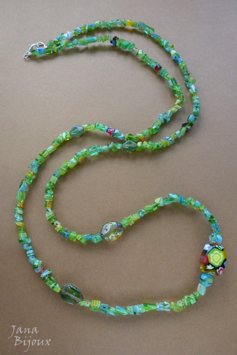 c859 08/04/2013VENDIDOS ( Prodáno)colar comprido, jana bijoux, MILLEFIORI, verde, vidro italianoJana Bijoux Colar comprido 94,5 cm de cascalho de millefiori verde R$ 34,00.