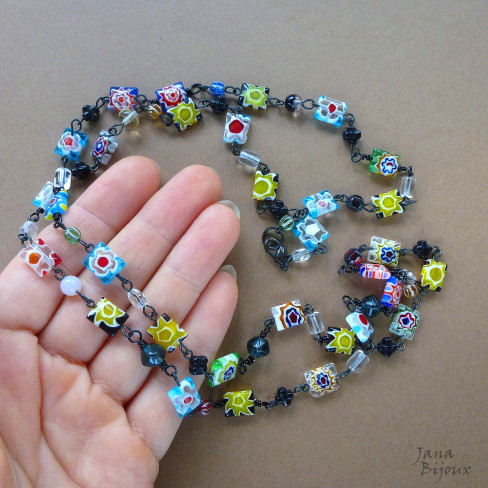 c864 10/04/2013VENDIDOS ( Prodáno)bijuteria artesanal, colar colorido, colar comprido, jana bijoux, MILLEFIORI, pretoJana Bijoux Colar comprido 91,5 cm de arames pretos importados (EUA) alguns torcidos a mão, vidro italiano, vidro R$ 49,90. PEÇA ÚNICA MILLEFIORI, SKLO.
