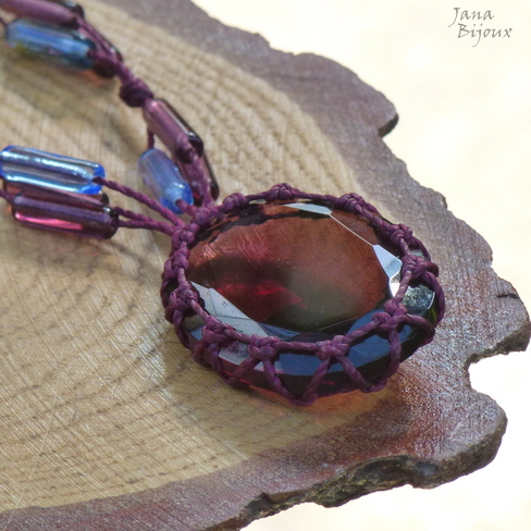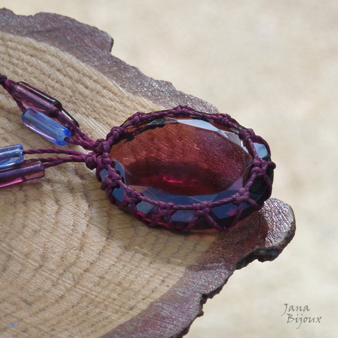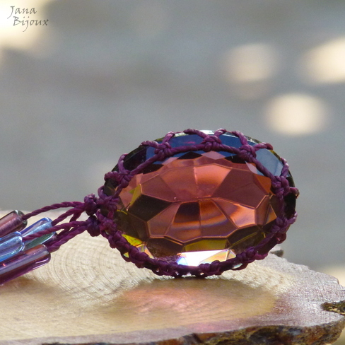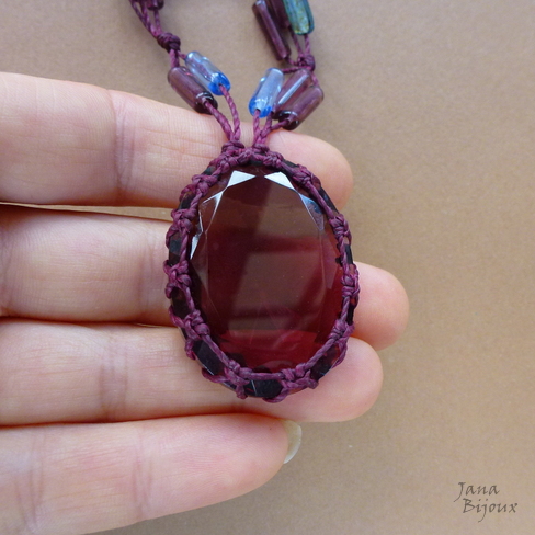 Cabochão cor cor ametista, mede 4 cm por 3 cm, é grosso e com lapidação cónica num lado. O medalhão não tem furo, segura sem cola só com macramé.R$ 33,00