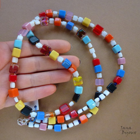 c894 07/08/2013VENDIDOS ( Prodáno)colar, colar colorido, cubos de vidro, jana bijoux, nada haverJana Bijoux Colar comprido 85,5 cm de cubos de vidro colorido distribuídos nada haver e no mesmo tempo tem equilibrio R$ 28,00.