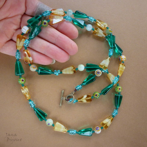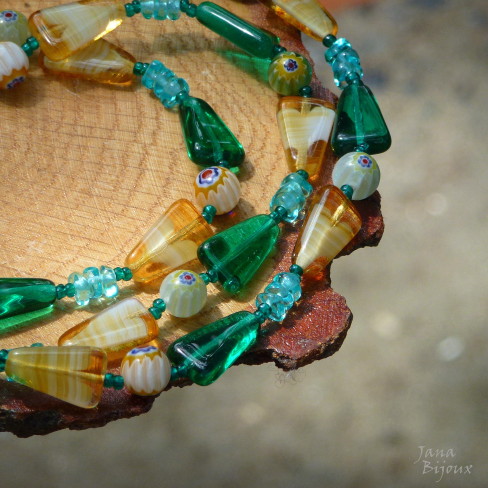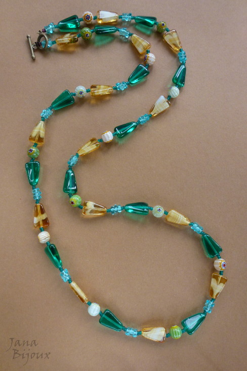 c906 04/10/2013VENDIDOS ( Prodáno)Jana Bijoux Colar 83,5 cm de vidro e millefiori, acabamento em formato de T – ouro velho R$ 45,00