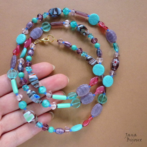 c923 02/01/2014VENDIDOS ( Prodáno)Jana Bijoux Colar comprido 89,5cm de vidro e millefiori, acabamento dourado R$ 48,00.