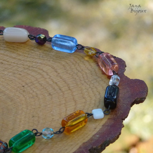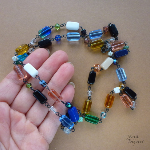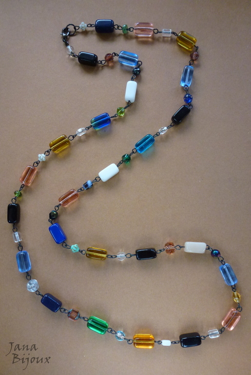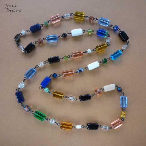Colar comprido 87 cm com vidro grosso e colorido, acabamento zinco preto. R$ 45,00