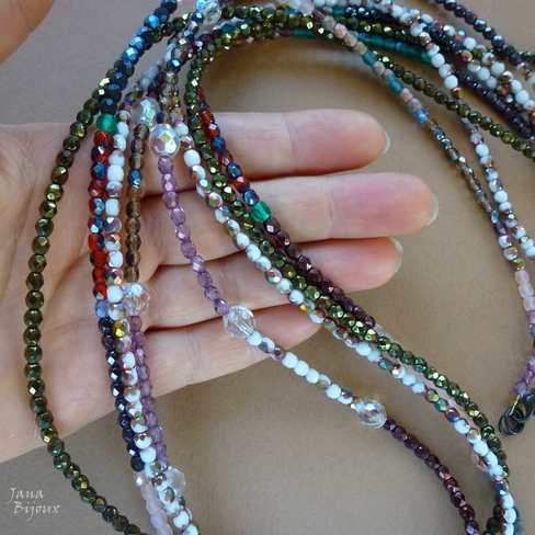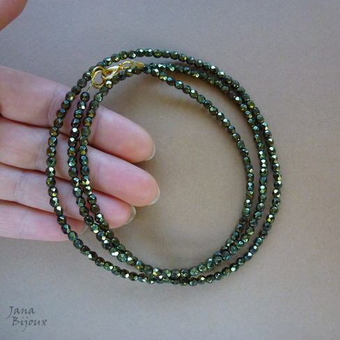 Colar comprido 87 cm de cristal delicado, dourado esverdeado, difícil de fotografar, na realidade é mais bonito e brilha mais que na foto, acabamento dourado (mas poderia trocar por outra cor = preto, prata ou ouro velho facilmente e sem custo) R$ 37,00.