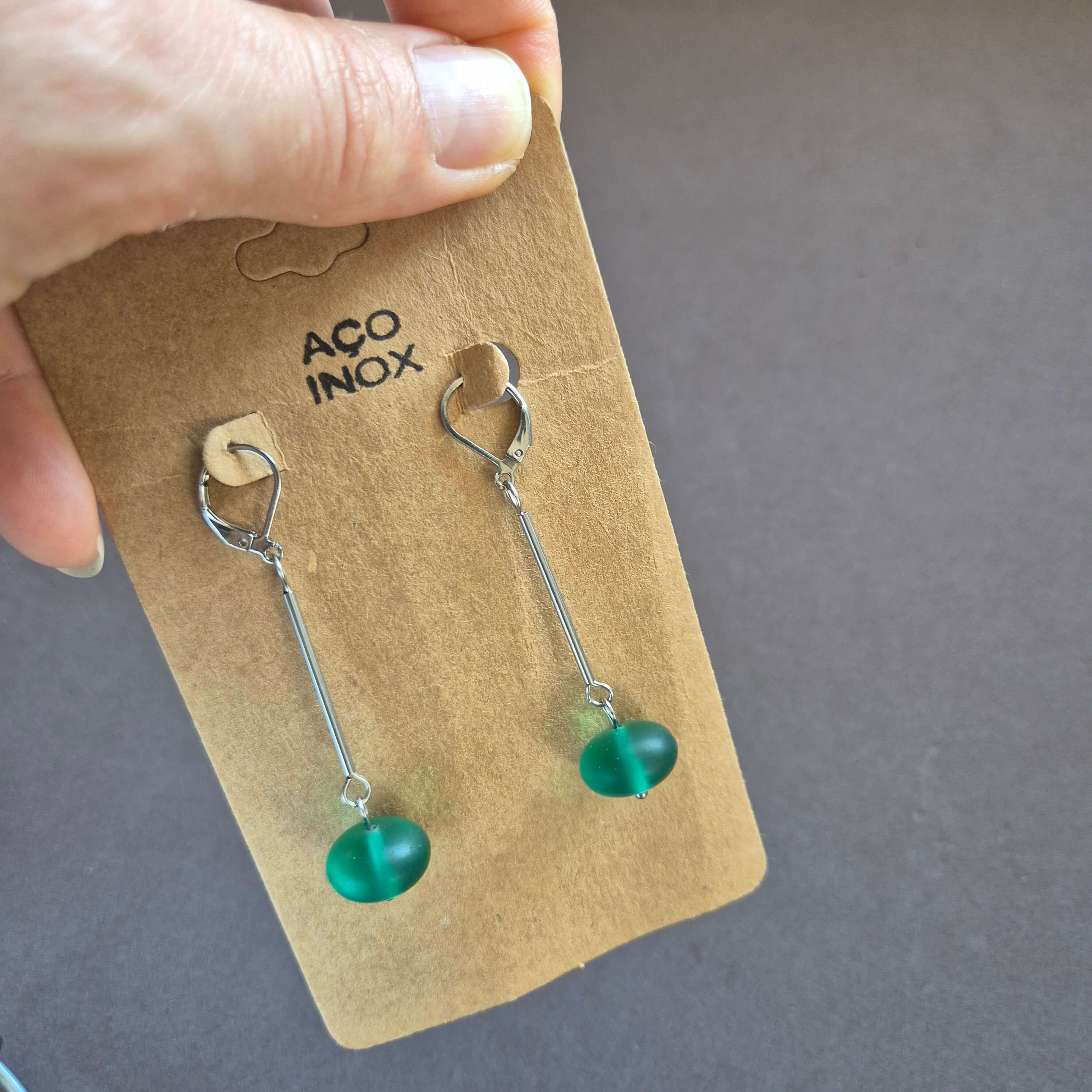 Disponível o assimétrico na cartela de papel craft.. fecho aço inox, comprimento 7 cm maior e 6 menor brinco. R$ 29,00