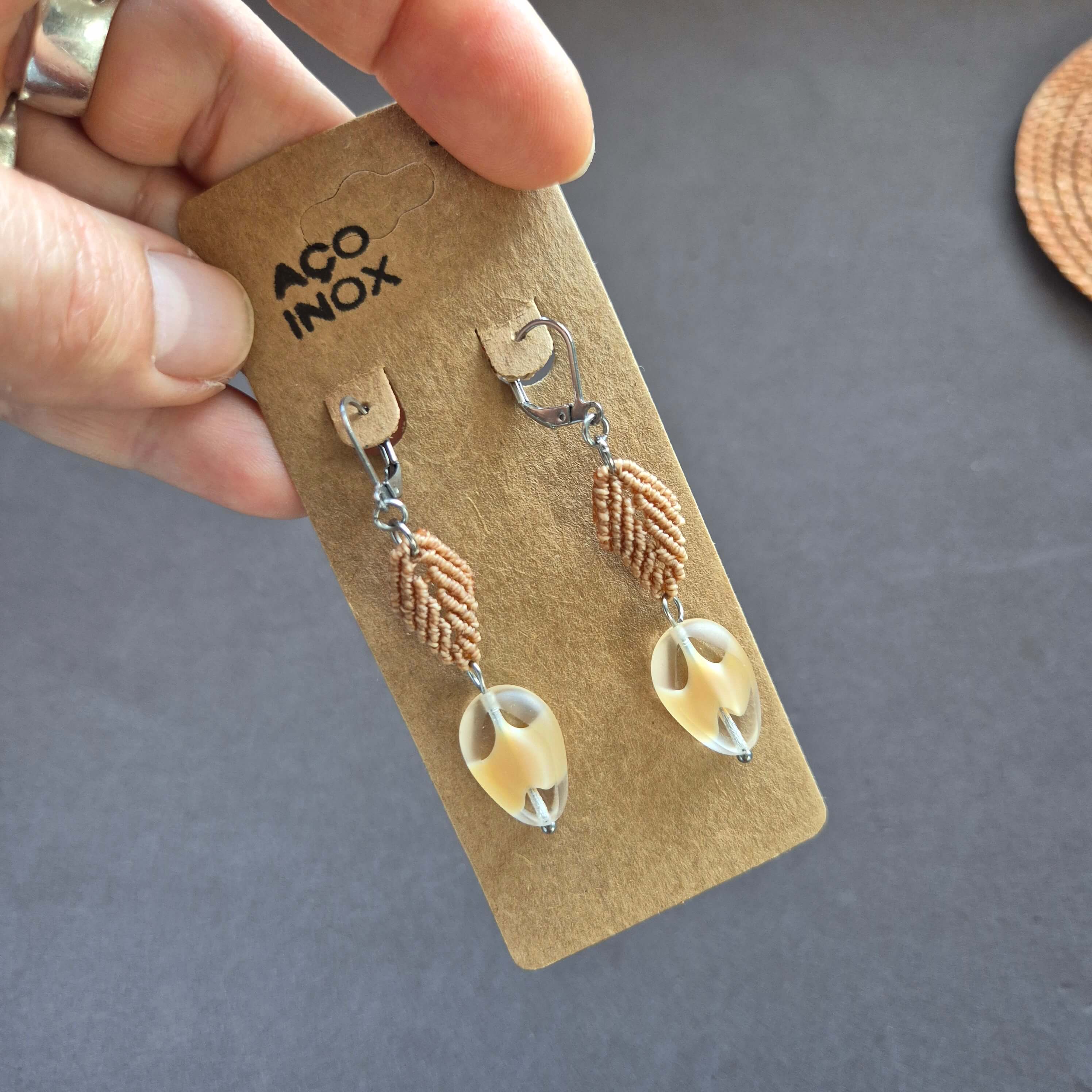 Brincos de macrame com aço inox.