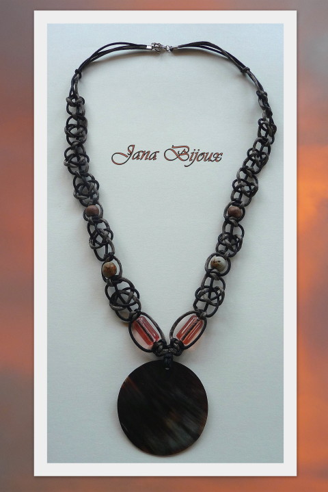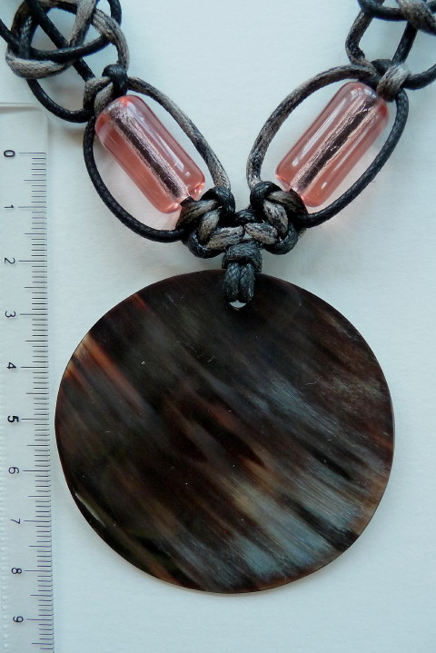 DLOUHÝ NÁHRDELNÍK SE SKLEM, UZLY, VYSKOKOTEPLOTNÍ KERAMIKOU A ROHOVINOU.