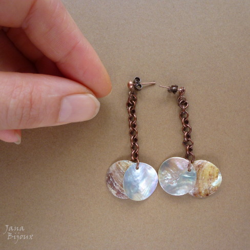 Cu16 28/01/2013VENDIDOS ( Prodáno)Jana Bijoux Ponta de estoque, componentes de cobre, tarraxa e conchinhas de ambos lados, comprimento 5,5 cm R$ 7,00 VÝPRODEJ, MĚDĚNÉ KOVODÍLY A MUŠLOVINA NA KAŽDOU STRANU.