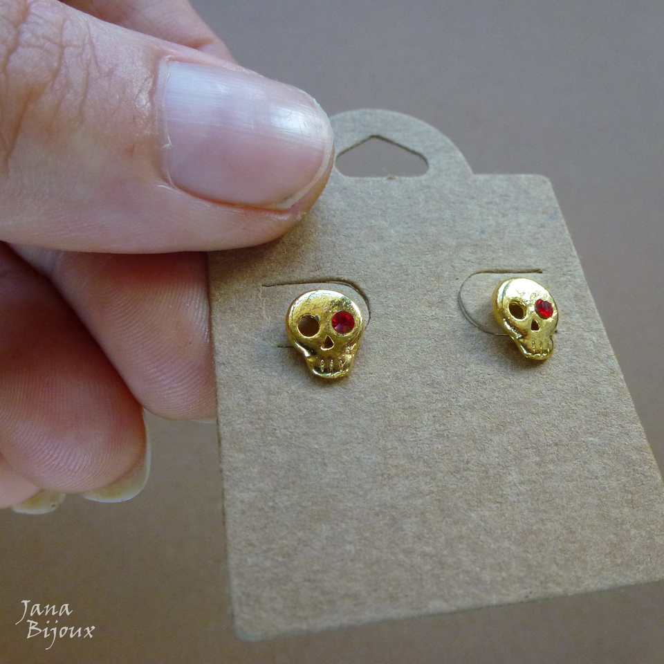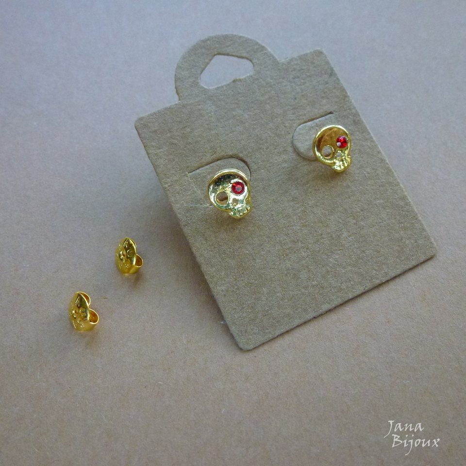 Brincos dourados com tarraxa e strass vermelho 0,8 cm  R$ 8,00