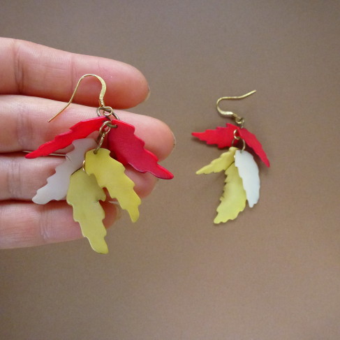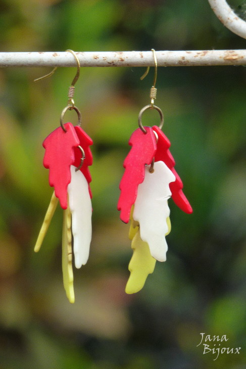 mc24 24/11/2012VENDIDOS ( Prodáno)Jana Bijoux Brincos compridos 6,5 cm de jarina tingida, componentes em ouro velho e dourado R$ 14,00