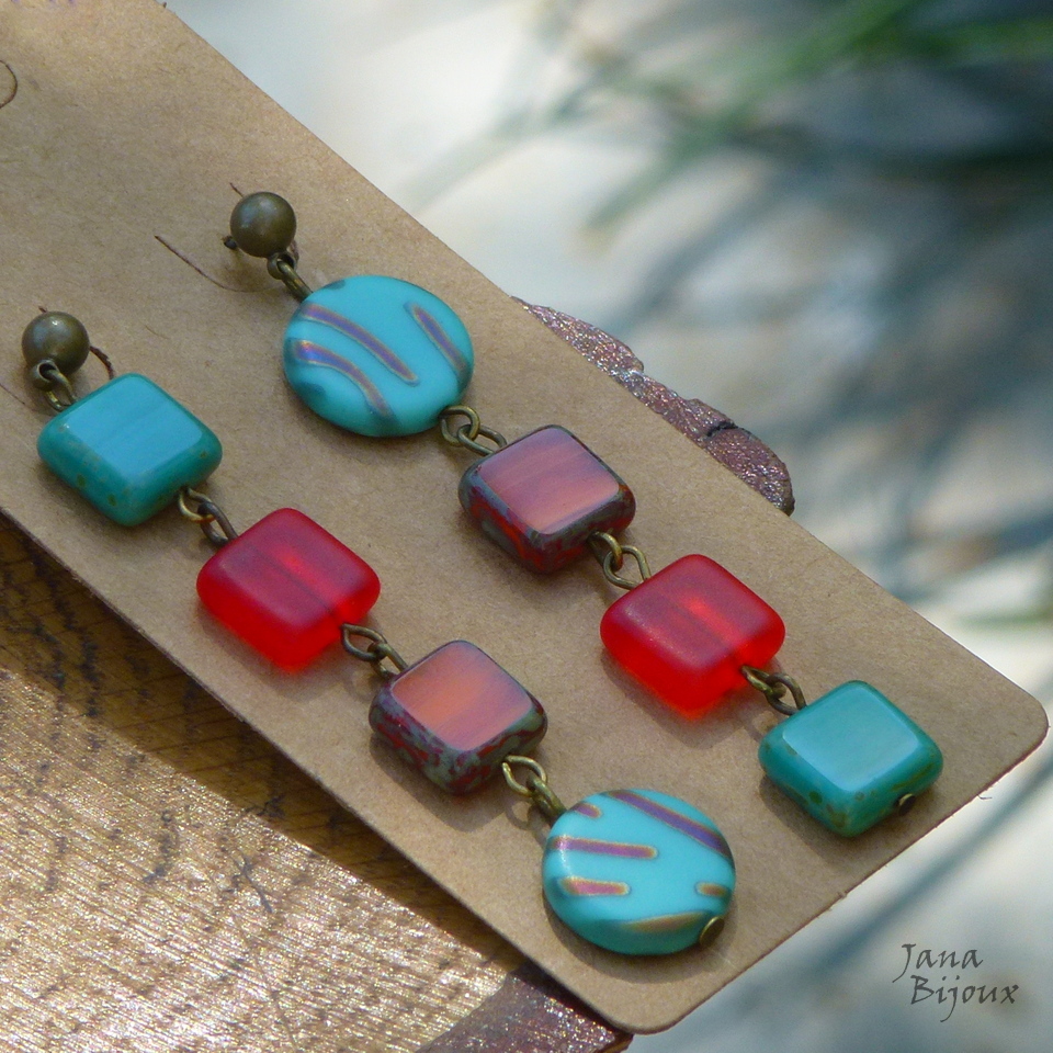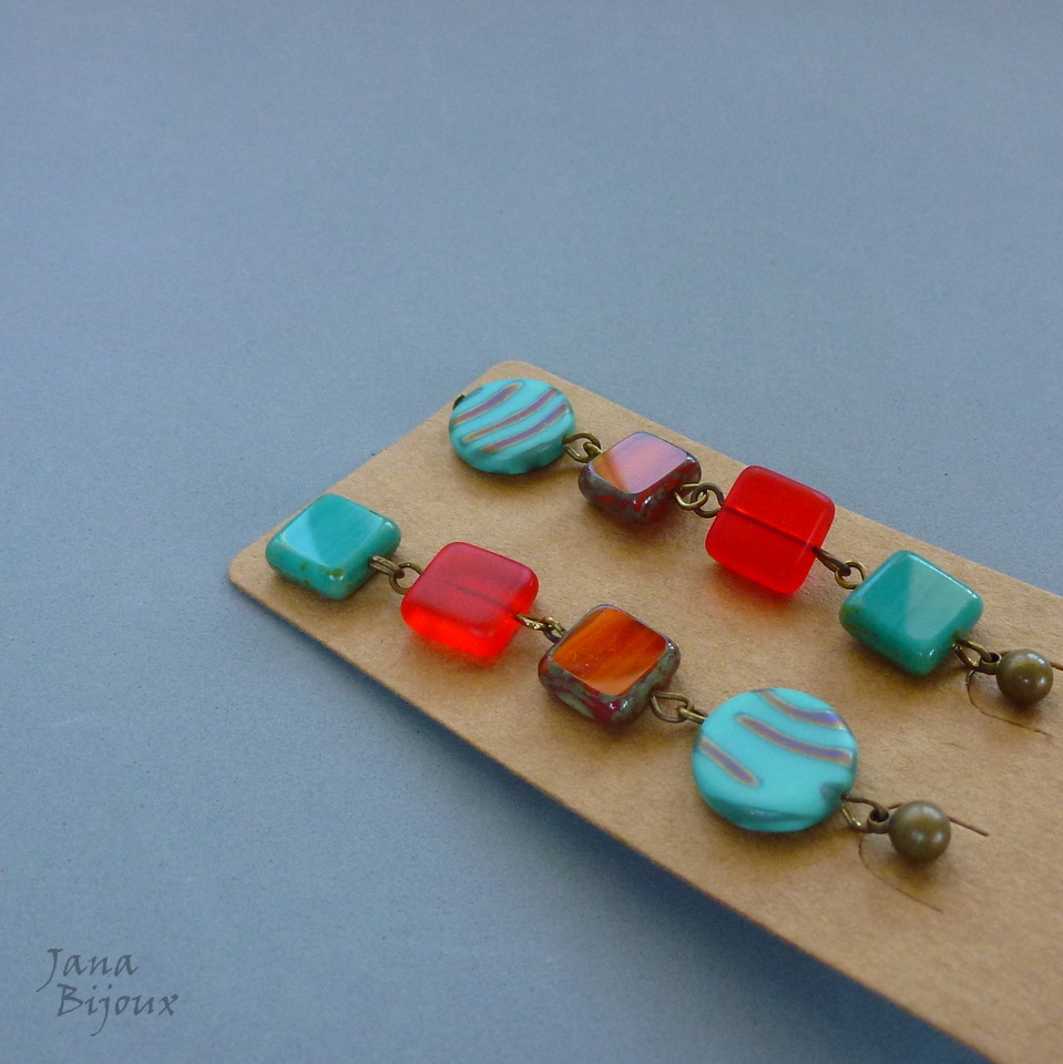 mc244 10/12/2017VENDIDOS ( Prodáno)Jana Bijoux Brincos compridos 7 cm, assimétricos, com vidro importado, alegre e tarrachas de ouro velho R$ 19,90