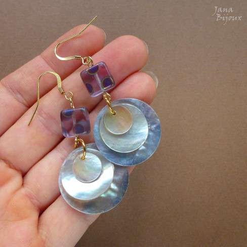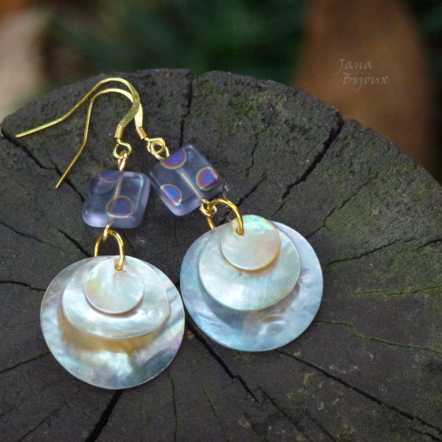 Brincos feito para combinar com colar, comprimento 6,2 cm de 3 tipos de conchas e vidro, componentes dourados R$ 18,00 Este está vendido, mas posso fazer iqual .