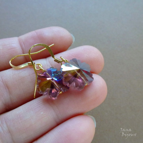 mc49 06/07/2013VENDIDOS ( Prodáno)Jana Bijoux Brincos 3,3 cm de flores de vidro cristal rosa e componetes de bijuteria dourada R$ 10,00.