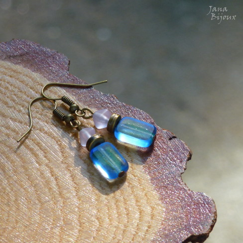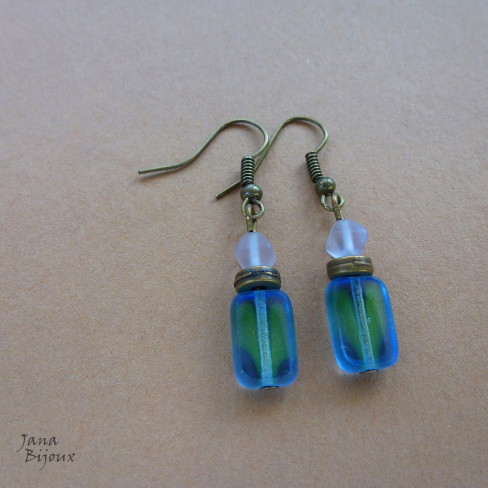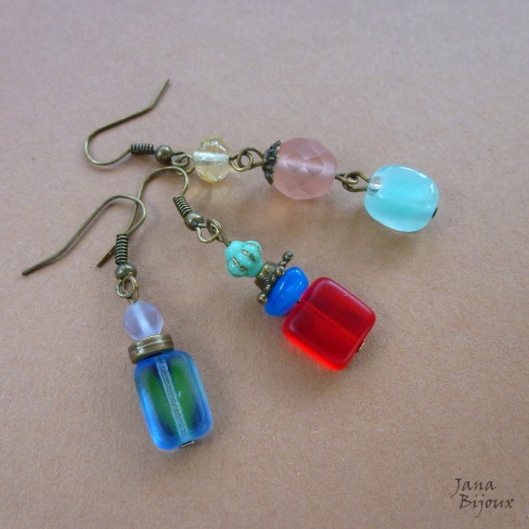 Brincos de 4cm, vidro e componentes ouro velho, fecho sem niquel R$ 13,00