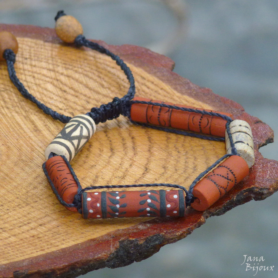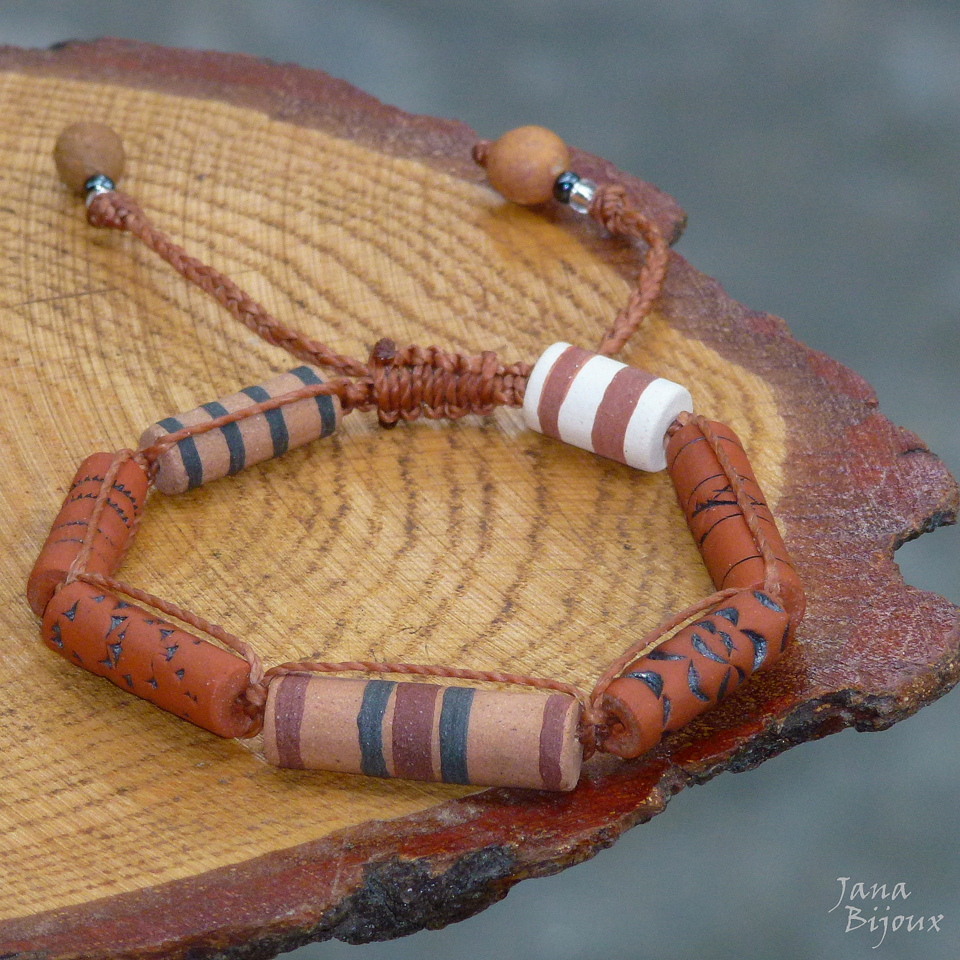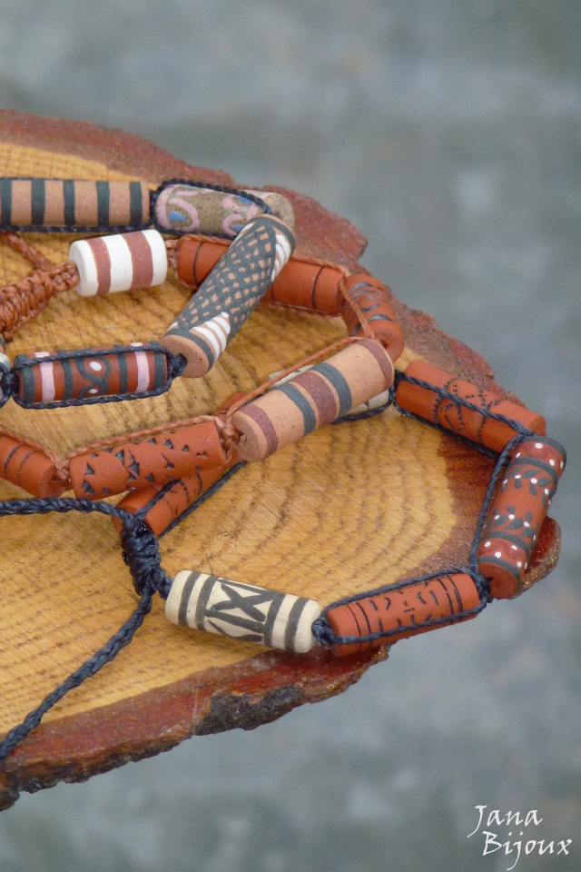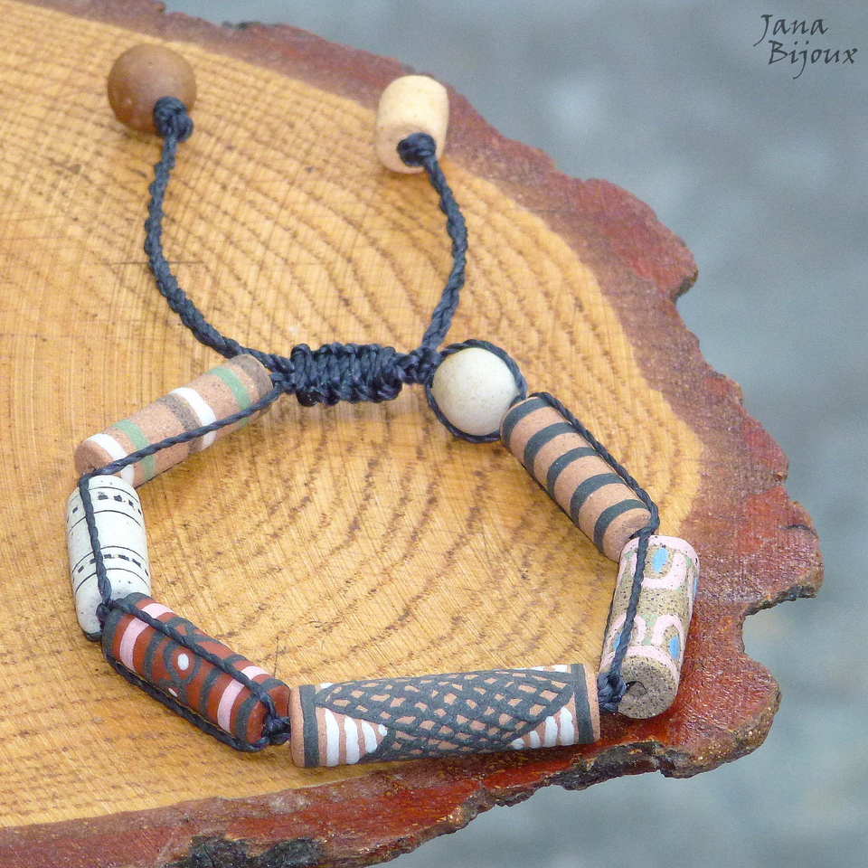 Pulseira ajustáveis com lindas cerâmicas de Janete Dallabona.. feitas a mão de diversas argilas, desenhos, técnicas, cores.. com macramé, abre e fecha conforme puxar as pontas.