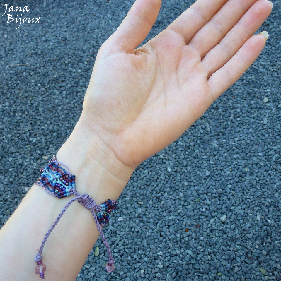Pulseira ajustável, de macramé e sem metal.