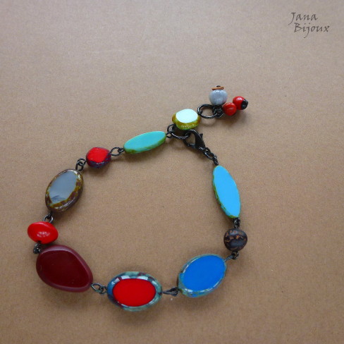 Náramek ze skla a semínek.
