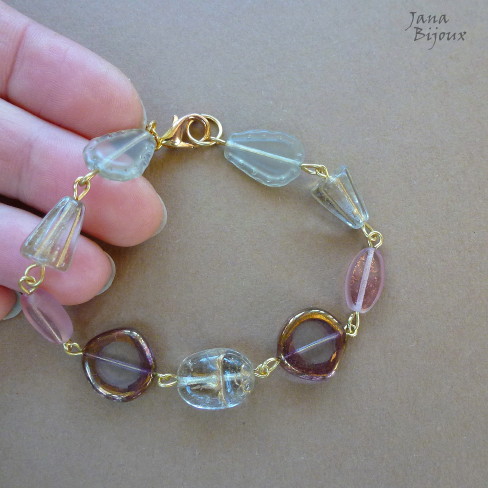 Pulseira dourada com vidro, comprimento 20,5 cm R$ 26,00.