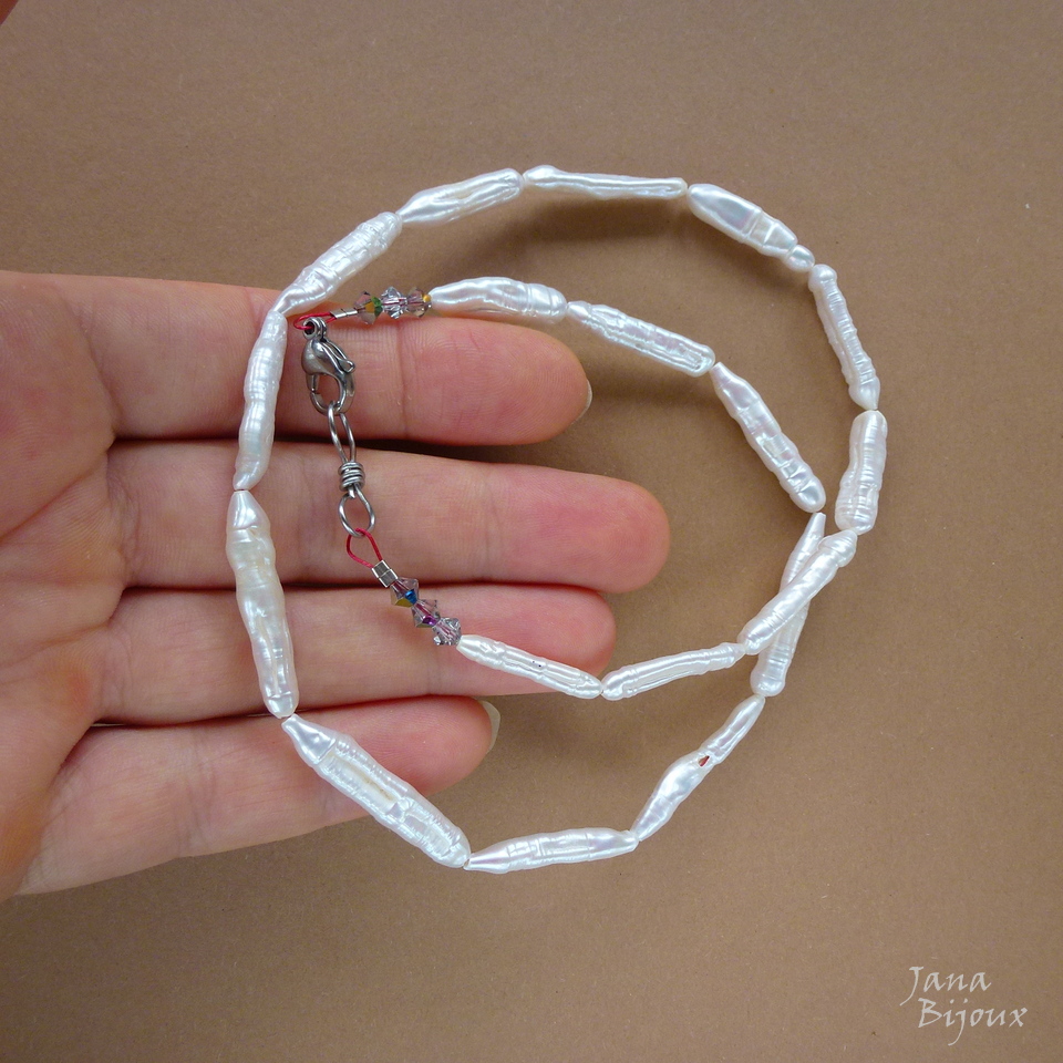 p225 06/01/2016VENDIDOS ( Prodáno)Jana Bijoux Colar 50 cm comprido de pérolas naturais biwa e 6 cristais PRECIOSA , fecho de aço inox R$ 55,00
