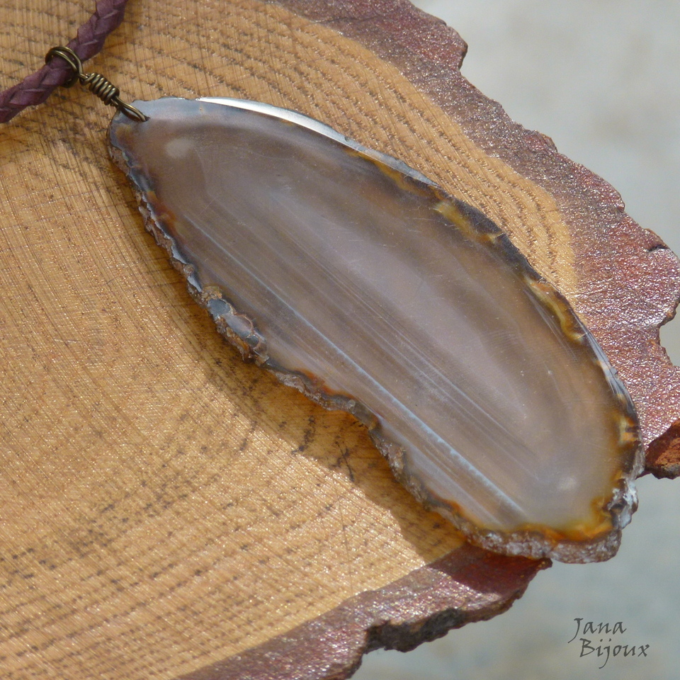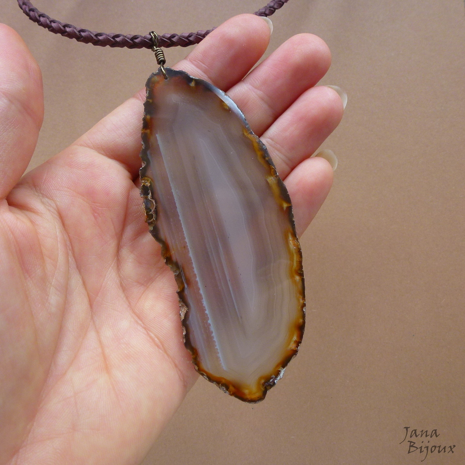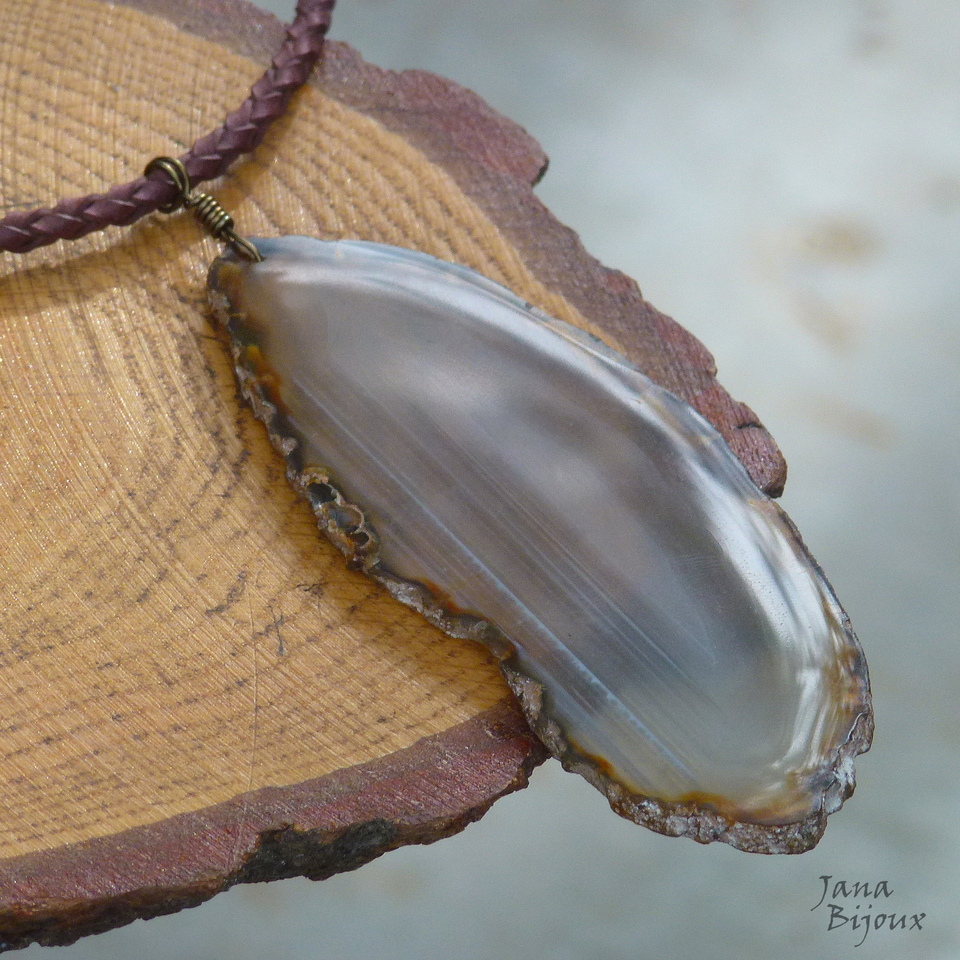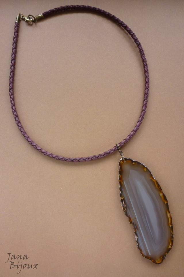 p241 09/03/2016VENDIDOS ( Prodáno)Jana Bijoux Colar curto com pedra natural agata e couro marrom. Agata mede 10 cm por 4 cm e é bem neutra, vai combinar com tudo. Com engate de ouro velho feito a mão, pingente inteiro mede 11,3 cm Couro mede 48,5 cm e tem acabamento tmb em ouro velho R$ 22,00