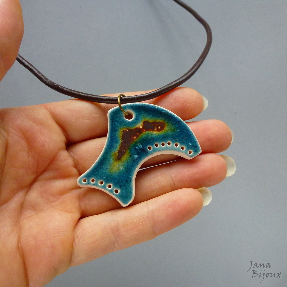 Colar curto 52 cm, com cerâmica assimétrica da Janete Dallabona (4,3 cm x 4 cm)  e couro de 3 mm, componentes ouro velho R$ 33,00