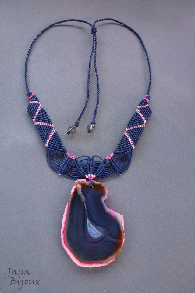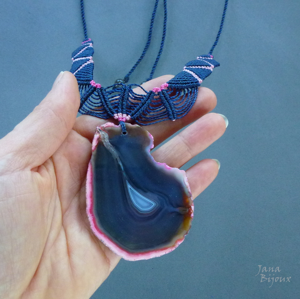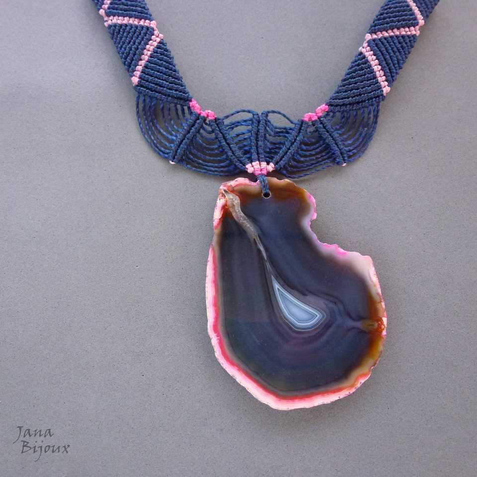 Colar de macramé com linda pedra brasileira, ágata.