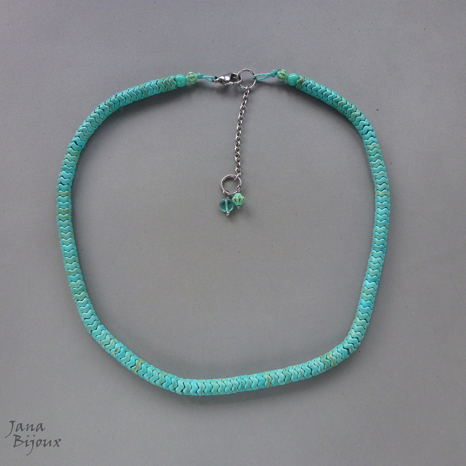 Colar curto 47 cm de pedra recortada howlita. Acabamento em inox com corrente para prolongar de 5 cm. 4 pçs perto do fecho e no final da corrente são de mesma cor que a pedra e é vidro importado R$ 42,00